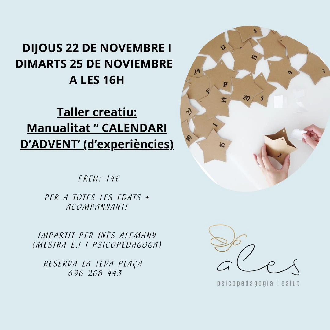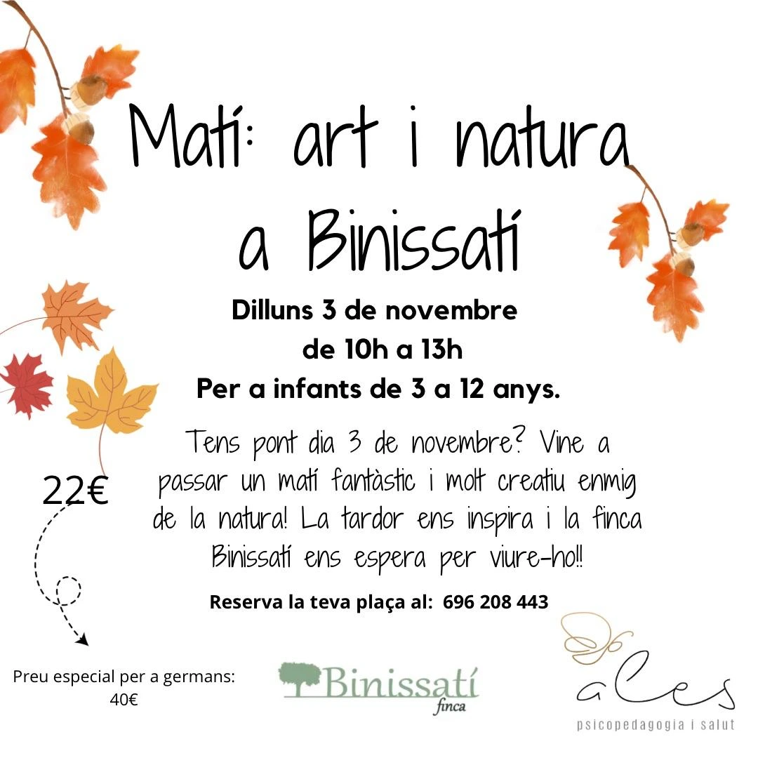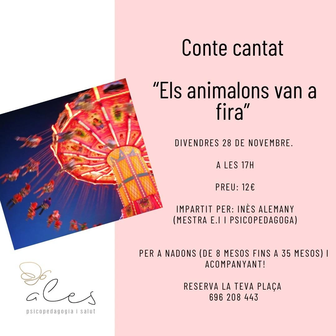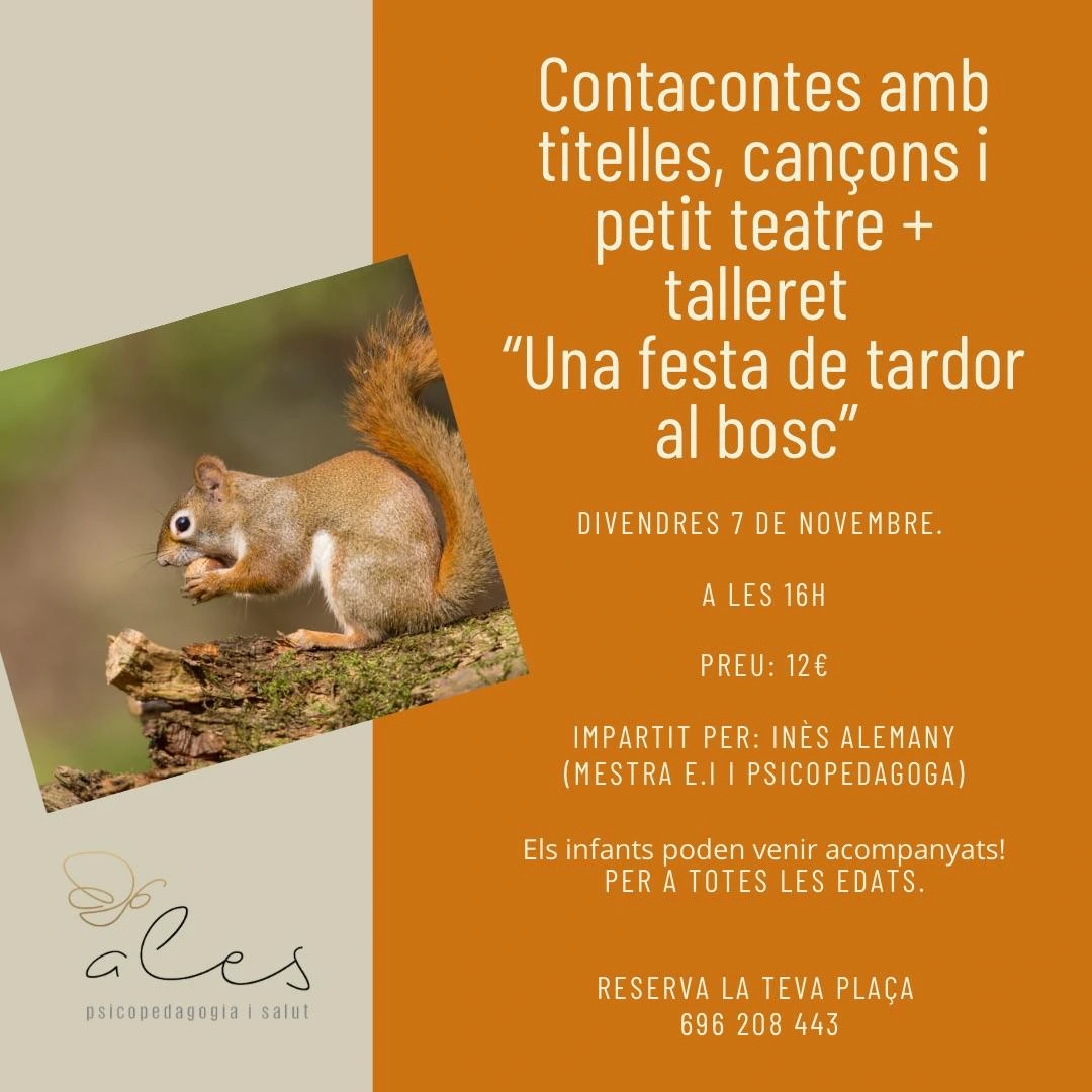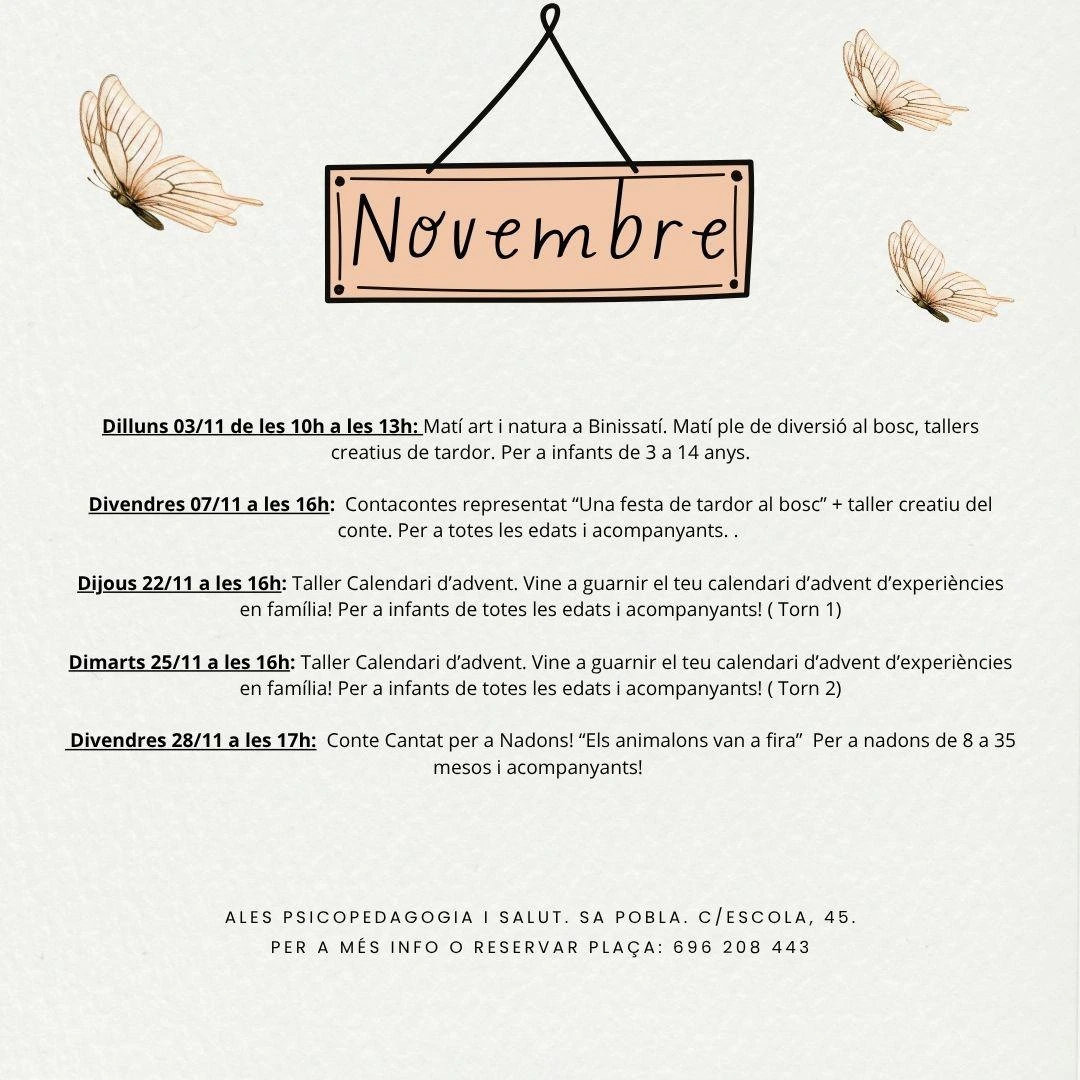 DARRERES NOTICIES NOVEMBRE MATÍ – ART I NATURA A BINISSATÍ CONTACONTES AMB TITELLES, CANÇONS I PETIT TEATRE – TALLERET – UNA FESTA DE TARDOR AL BOSC TALLER CREATIU – CALENDARI DADVENT CONTE CANTAT – ELS ANIMALONS VA A FIRA ALES ESDEVENIMENTS: ALES ESDEVENIMENTS MÉS INFO EXTRAESCOLARS: ARTALES LECTOESCRIPTURA I LLETRAJUGA MÚSICA I MOVIMENT PER A NADONS I FAMILÍA PLAY AND SPEAK TALLERS MUSICALS PER A INFANTS